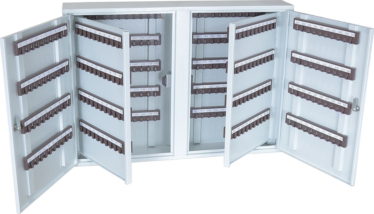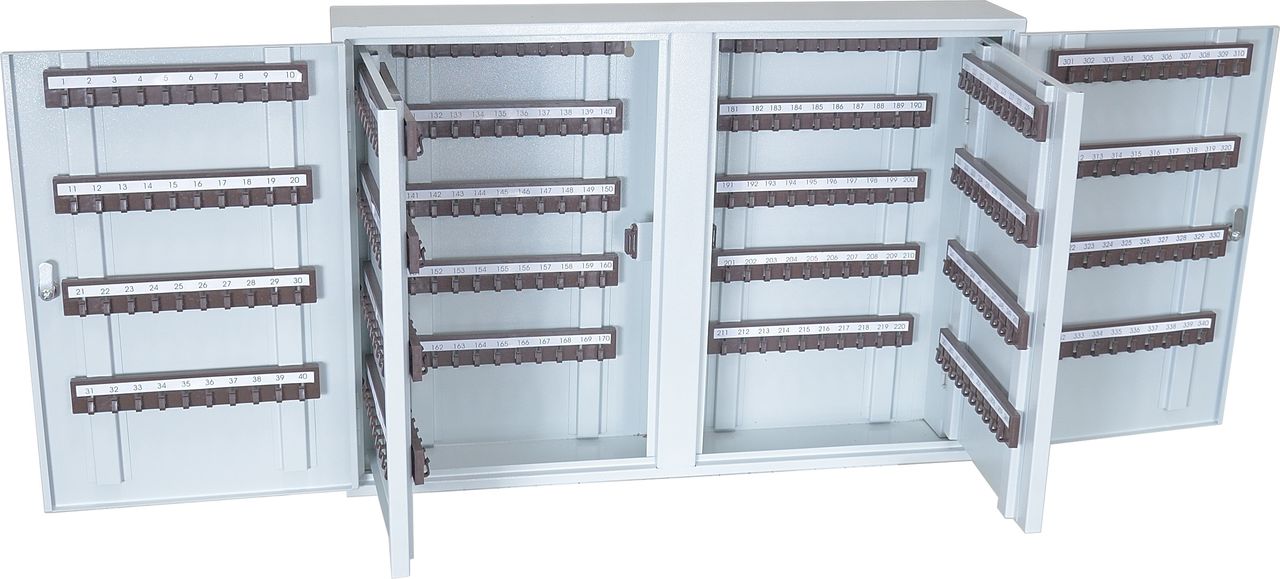 Ключница КЛ-340 предназначена для хранения 340 комплектов ключей. На задней стенке корпуса расположены отверстия для крепления. Ключница комплектуется 34 планками под навеску ключей. В двери установлены замки типа «Cam-Lock».