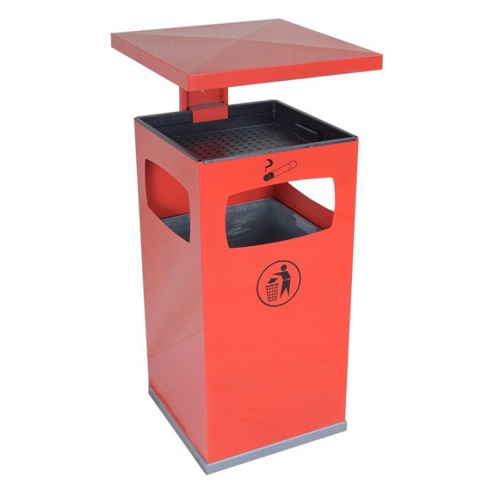 Модель УН-4 (урна напольная) предназначена для установки на землю. Комплектуется съемным козырьком, запираемым на замок, пепельницей и внутренним оцинкованным баком под мусор.