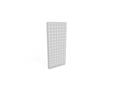 Перфорированные панели предназначены для установки с внутренней части шкафа на заднюю стенку корпуса через овальные отверстия в гибах панелей, при помощи 4-х самонарезающих винтов 6,3х19 и специальных вставных пластинчатых гаек. Панели имеют перфорацию в виде квадрата 12х12мм, и шагом 38мм. Панели выполнены из конструкционной листовой оцинкованной стали ГОСТ 14918 толщиной 1.0мм., окрашены порошковой краской, стандартный цвет RAL 7047, окраска дополнительно защищает и придаёт необходимый вид. На панели возможна установка удерживающих элементов от изделий СХ и Quadro. Общая равномерно-распределённая нагрузка на панель до 80кг.