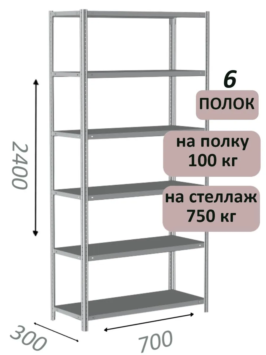 Чтобы уточнить цену и заказать доставку Стеллаж металлический полочный МС 2400х700х300, 6 полок, 100 кг на полку, светло-серый в , звоните по телефону или закажите обратный звонок.
