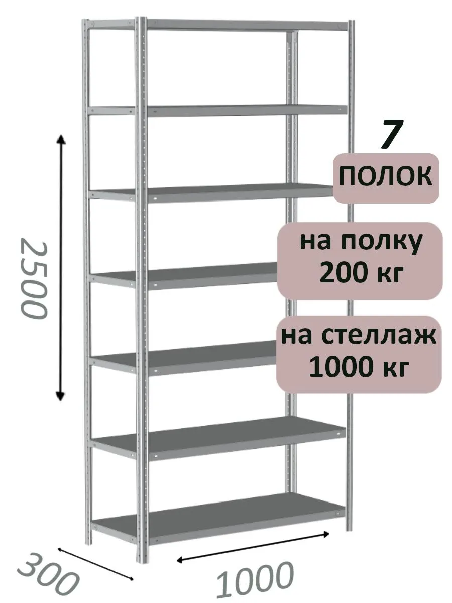 Стеллаж MS Hard 250х100х30, 7 полок