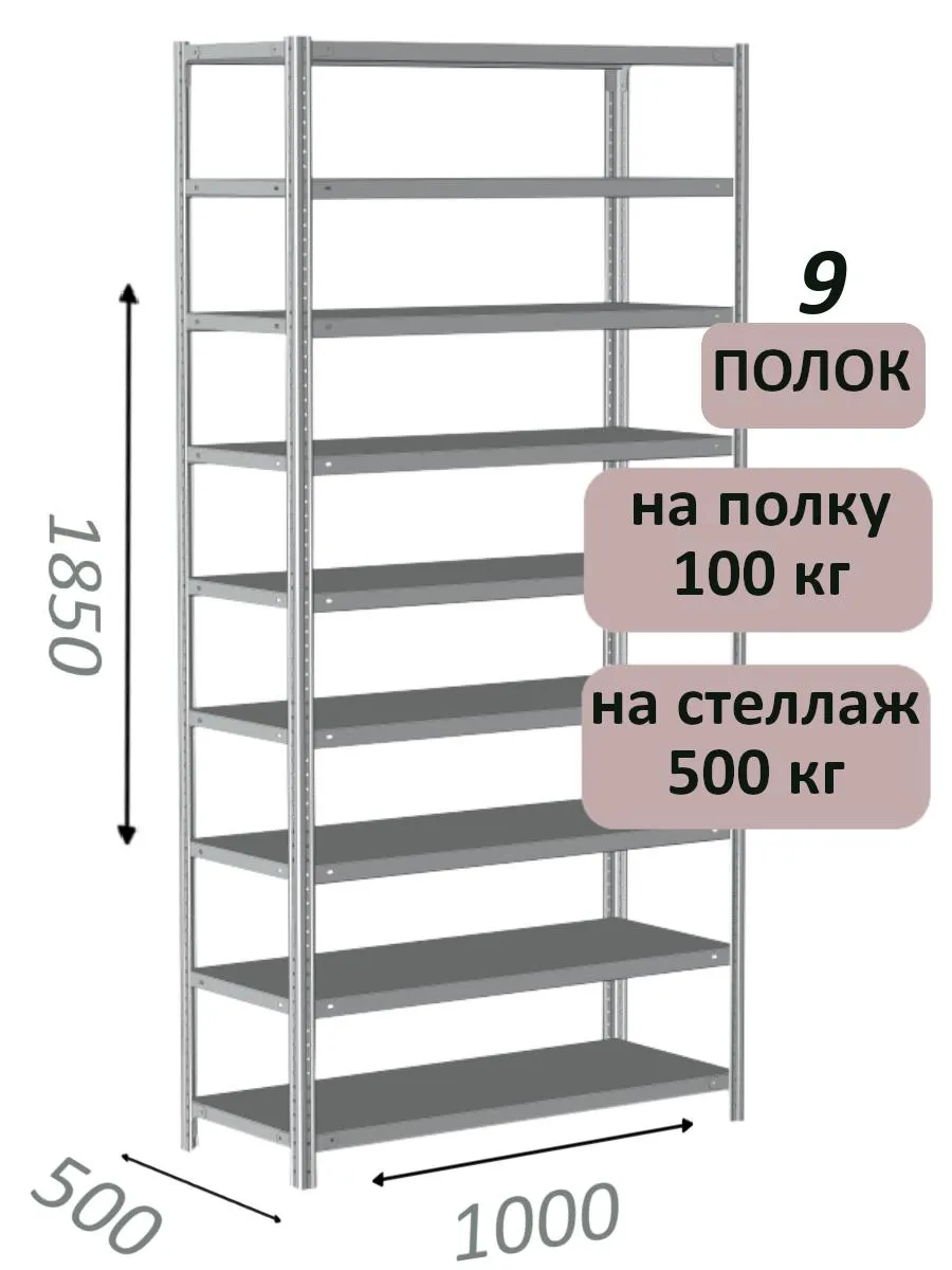 Стеллаж MS Standart 185х100х50, 9 полок, серый