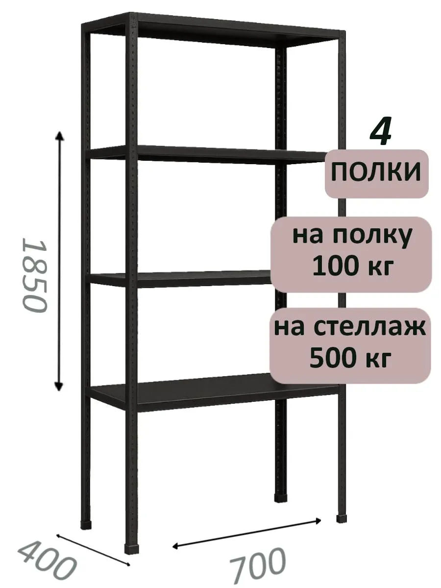 Чтобы уточнить цену и заказать доставку Стеллаж MS Standart 185х70х40, 4 полки, чёрный в , звоните по телефону или закажите обратный звонок.