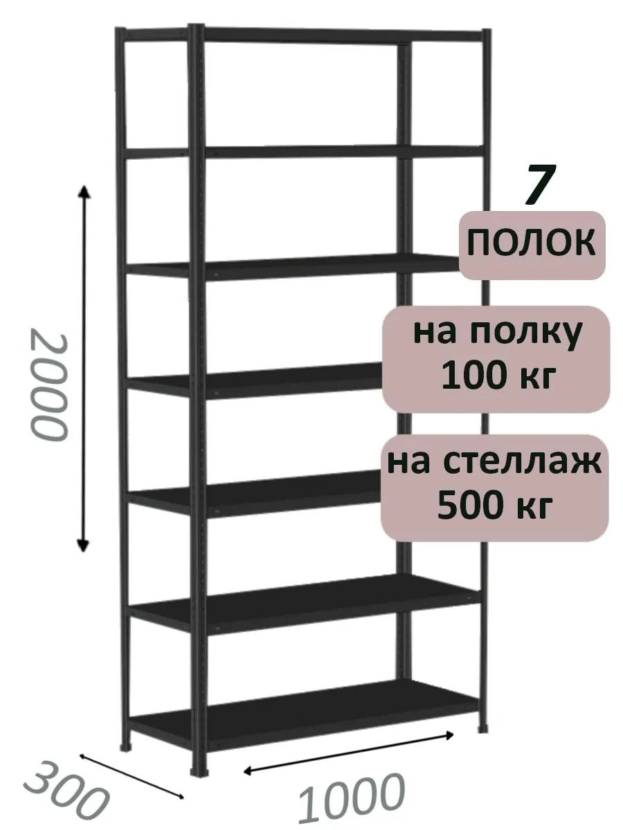 Стеллаж MS Standart 200х100х30, 7 полок, чёрный
