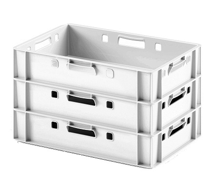 Ящики для мясоперерабатывающих предприятий, из первичного полиэтилена, работают на конвейерах, подходят для шоковой заморозки.