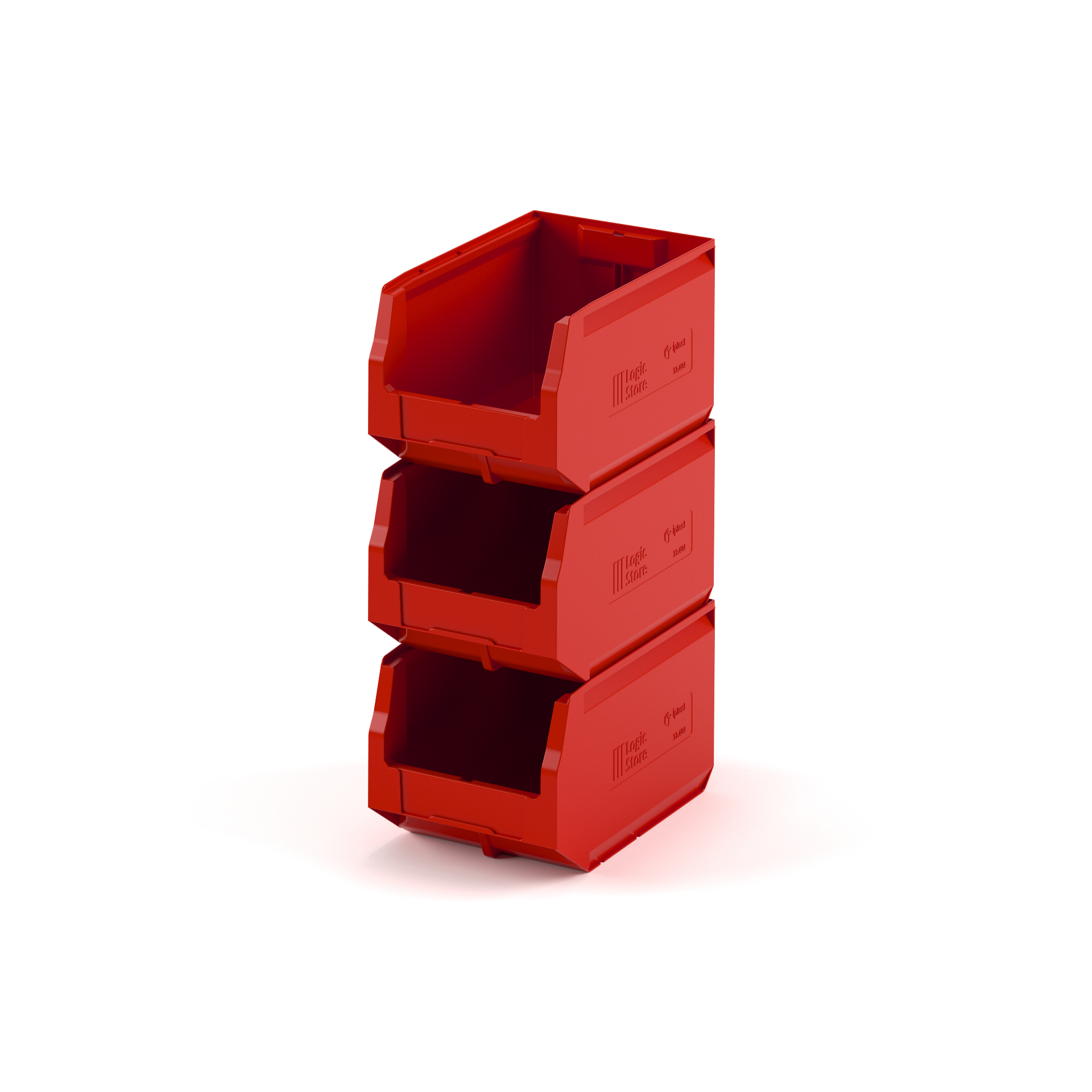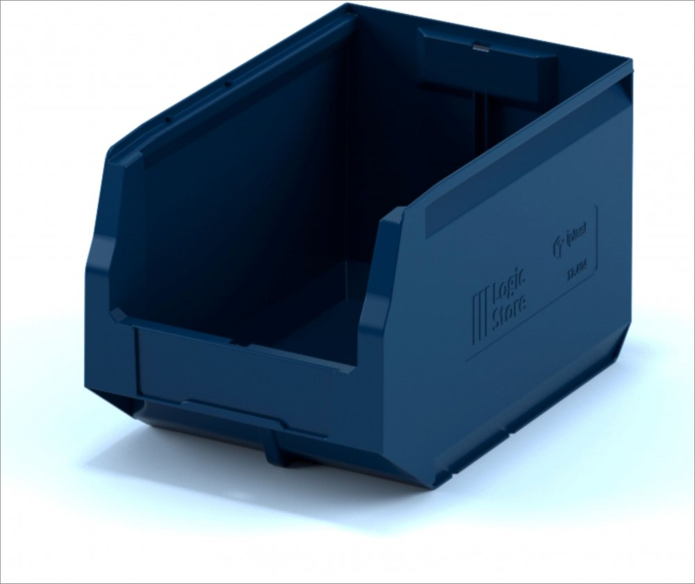 За счет убранных внутрь ребер жесткости контейнера достигается экономия пространства на 15%. Шероховатая поверхность дна предотвращает скольжение на стеллажах и лентах транспортеров, а специальный профиль придает прочность и жесткость боковым стенкам контейнера.