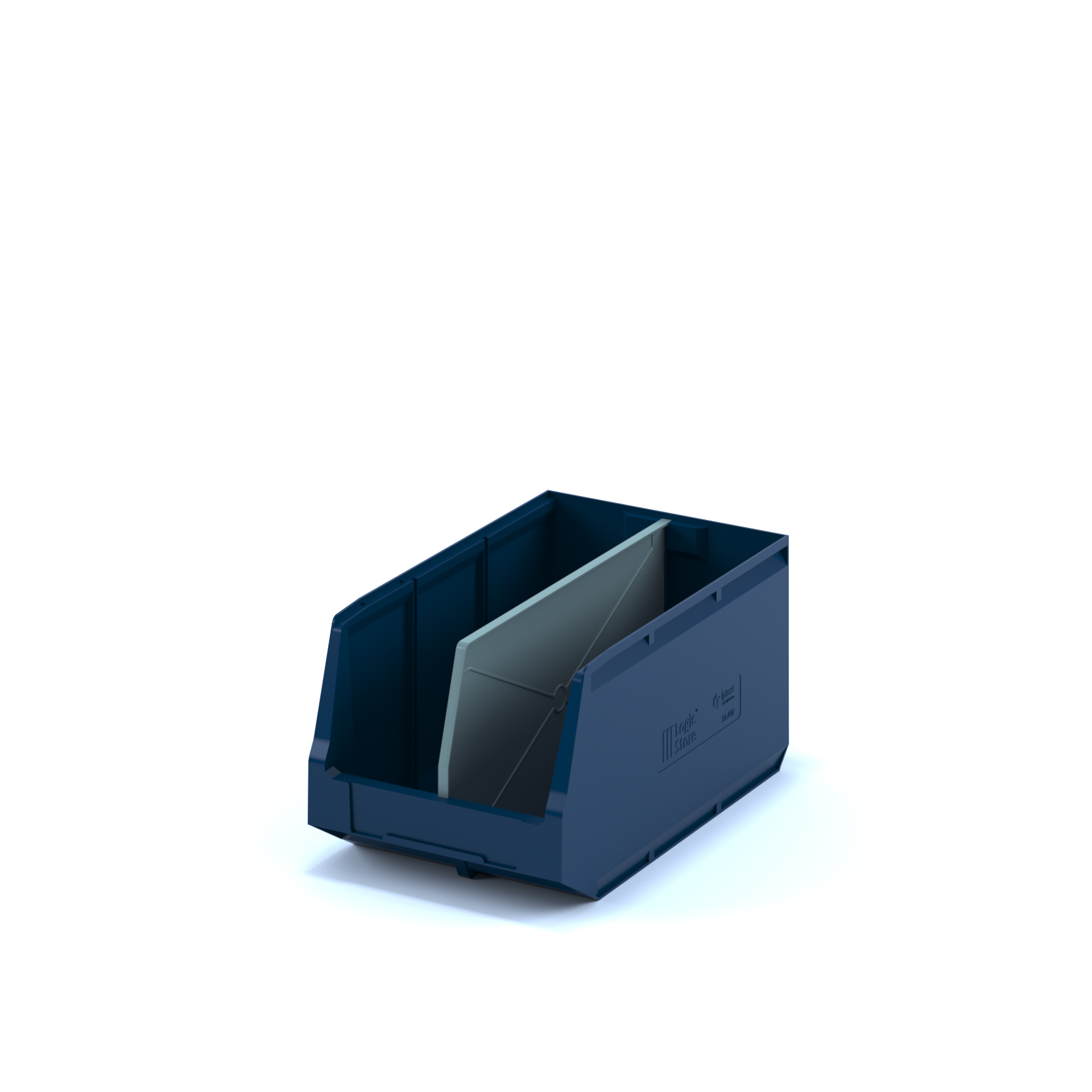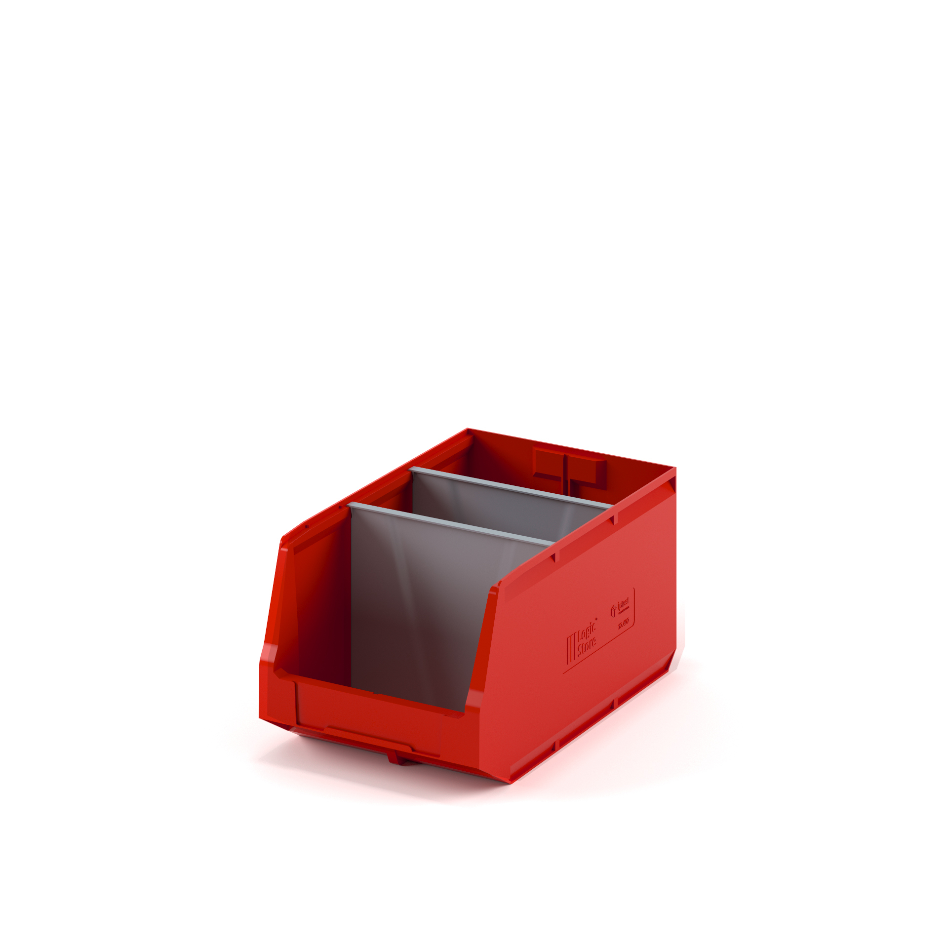 За счет убранных внутрь ребер жесткости контейнера достигается экономия пространства на 15%. Шероховатая поверхность дна предотвращает скольжение на стеллажах и лентах транспортеров, а специальный профиль придает прочность и жесткость боковым стенкам контейнера.