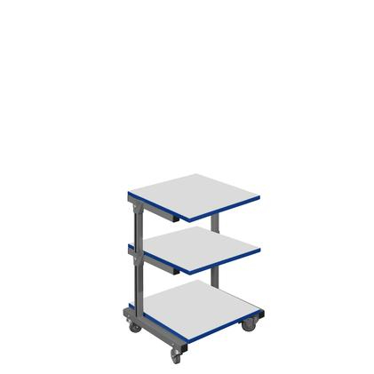 Каркас стойки подкатной СПМ выполнен из П-образного профиля, покрытого износостойкой порошковой краской светло-серого цвета RAL7035. Высота полок регулируется. Распределенная нагрузка на стойку до 80 кг. Конструкция подкатной стойки позволяет оснастить ее дополнительными полками и электропанелью.
