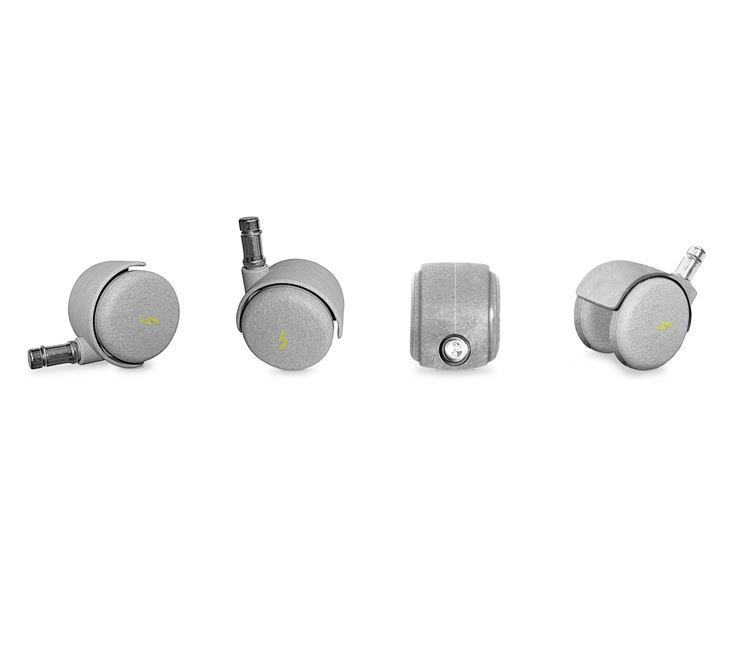 Комплекты антистатических колес (черный и светло-серый) подходят ко всем типам стульев и табуретов VIKING LAB. Комплект самоориентирующихся мягких двойных колес ESD черного цвета, блокирующихся при отсутствии нагрузки.