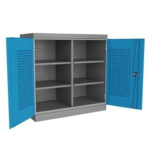 Антресоли изготовлена из листовой стали и обеспечивает надежное запирание дверей ригельной системой. Шкаф данной модели может комплектоваться либо полками Technic(1) и ящиками Technic(1) – по всей ширине шкафа, при этом максимальное количество полок и ящиков по высоте - 12 штук. При установке перегородки, шкаф делится на две части и может комплектоваться полками Technic(2) и ящиками Technic(2), при этом максимальное количество полок и ящиков по высоте - 12 штук в два ряда.