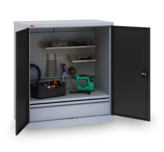 Односекционный инструментальный шкаф. Вариант возможной комплектации (инструменты на фото в комплектацию не входят)