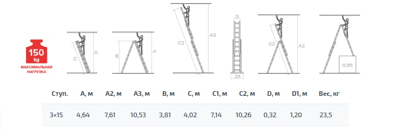 - Верхняя секция легко снимается для использования в качестве отдельной приставной лестницы.