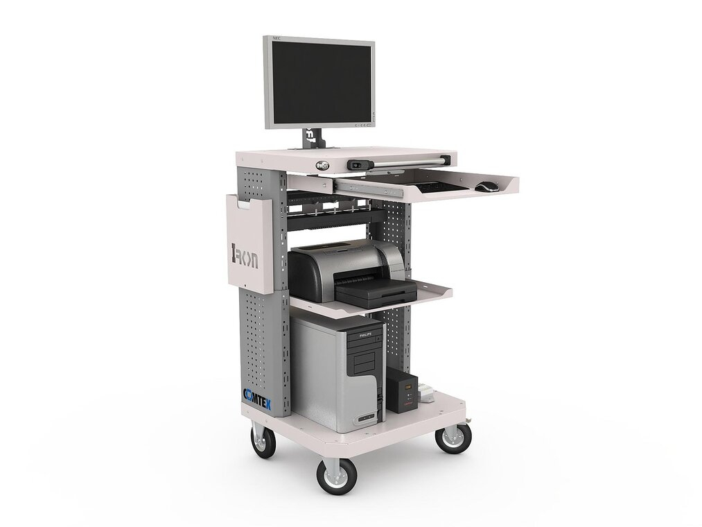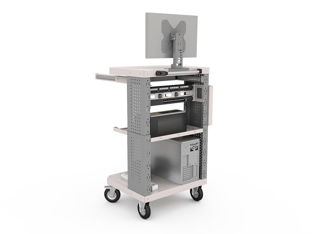 Стойки тележки имеют перфорацию для крепления различных держателей и крючков, а также фиксации кабелей при помощи хомутов.
