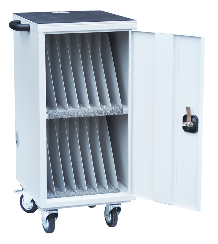 Металлическая тележка предназначена для хранения 14 ноутбуков.