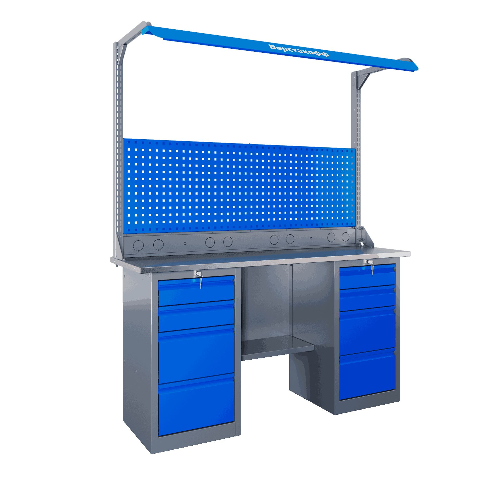 Самые компактные верстаки с глубиной столешницы 500 мм. Благодаря небольшой глубине, такие верстаки легко размещаются в ограниченных пространствах, например, в гаражах, мастерских и тд. Несмотря на компактные размеры, верстаки могут быть оснащены полками, ящиками и держателями для инструментов, что помогает поддерживать порядок и быстро находить нужные предметы.