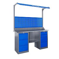 Верстак SLF 181.57-1 – незаменимое оборудование для работы слесарей, плотников, механиков в автосервисах, мастерских, промышленных цехах и т.д. Модель относится к бюджетной серии, поэтому ее максимальная нагрузка – средняя и составляет 300 кг, а стоимость выгодно отличается от аналогичных моделей.