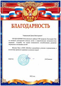 Благодарственное письмо